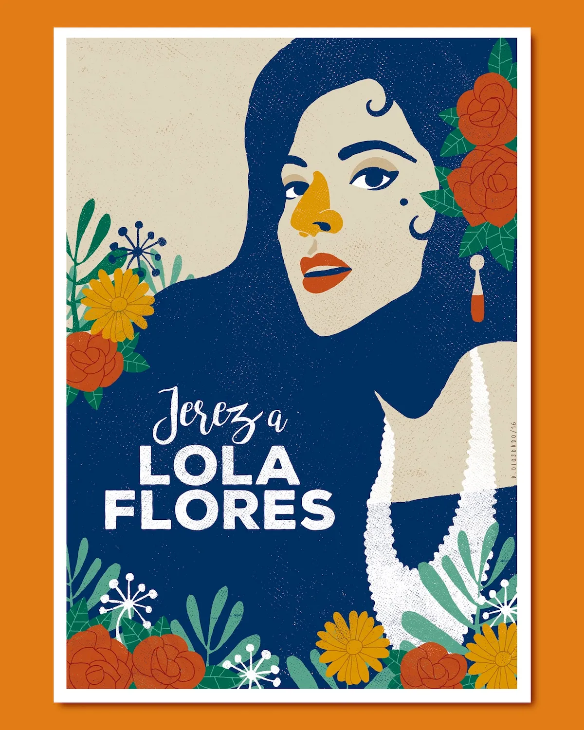 Le travail de Diosdado se caractérise par une esthétique directe, colorée et symbolique, où s'entremêlent la culture populaire, la tradition andalouse et les références graphiques de l'affiche des années 50, de l'estampe et de mouvements tels que le Mid-Century.